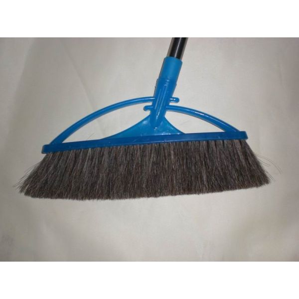 Brown Grey Horse Hair Mixed PP Fiber Floor Brush,Planstic Grip, Stainless Steel Rod For Cleaning